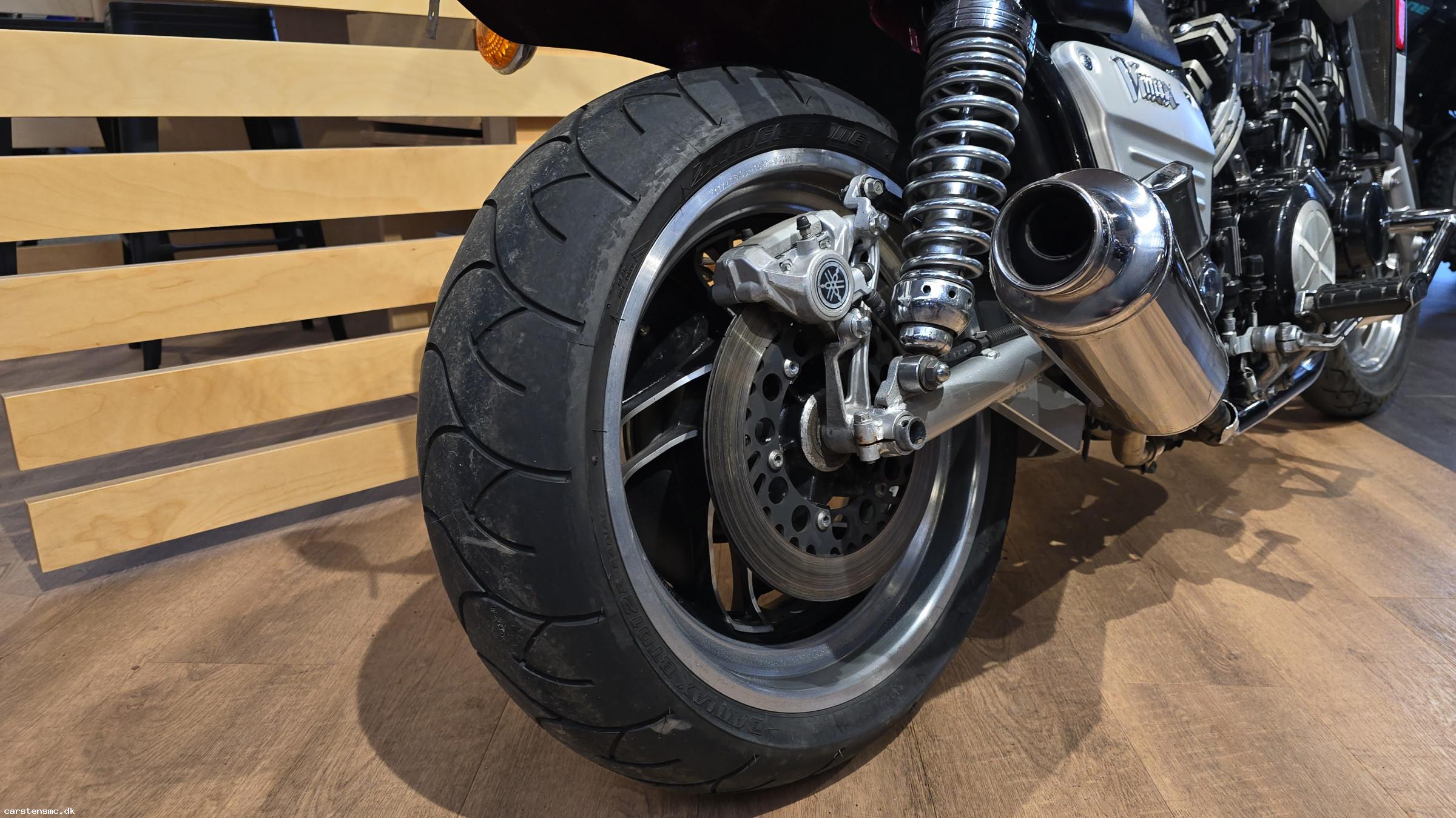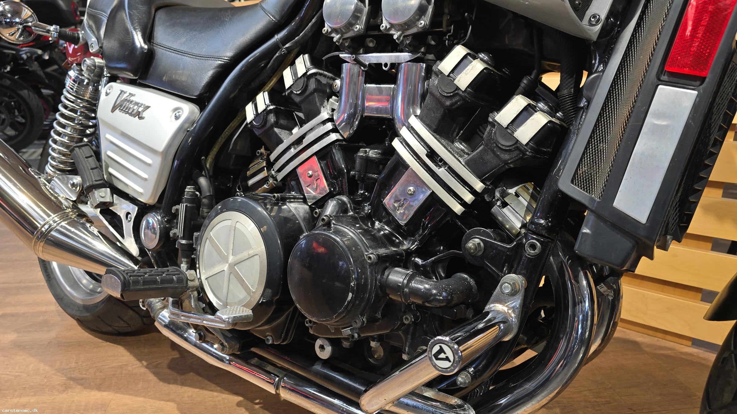 Meget fin og flot Yamaha V-MAX 1200 fra 1987, som fremstår pæn og velholdt i forhold til sin alder og tydeligt bærer præg af at være passet godt på gennem årene. En ikonisk motorcykel med masser af karakter, råt udtryk og den legendariske V4-motor, der gjorde V-MAX til noget helt særligt i sin tid.